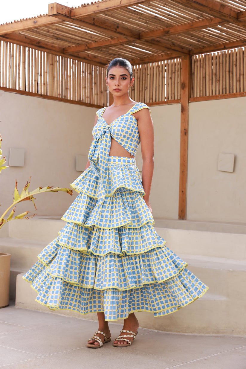 Blue Tie-Shoulder Midi