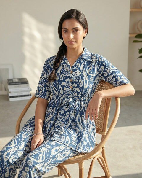 Blue Paisley Tie-Shoulder Midi Dress (Copy)